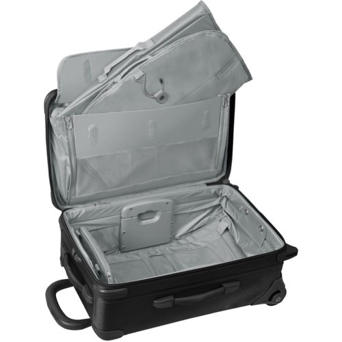 I had a predecessor to this B&R bag for about 10 years. To talk about this new model I have to talk about the old one. It was a great bag. Fit in just every airline bin, traveled about 1M air miles and all the taxis, hotels, and buses in between. The suit carrying mechanism was different (a separate zippered compartment) and was roomy enough to stuff a couple suits, shirts etc into it. During that time I made use of B&R's no-questions, easy-to-use, lifetime warranty about three times - zipper pulls, handle, and wheel replacement. When it was time to buy another I did my research and, considering the past performance, and great service on top of the best warranty, I opted for the one-touch expandable.