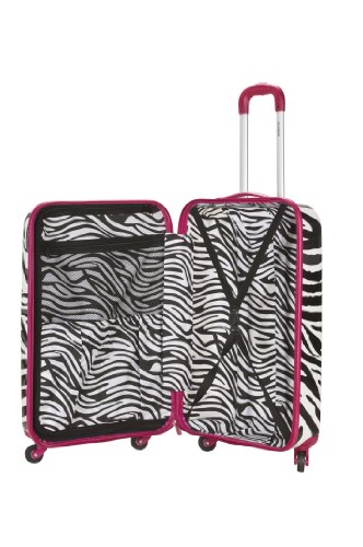 This carry-on is made of polycarbonate,abs. The major benefits of this material - it is extremely lightweight, it is durable, and protects the contents of your luggage. Eight multi directional spinner wheels rotate 360 degrees for easy maneuverability. This luggage allows you to pack more while avoiding the excess weight surcharges imposed by most airlines. Features include: multi-directional spinner wheels for easy maneuverability, modern internal chrome telescoping handle with push button handle, interior mesh and zip pocket and elastic pocket. Measures 20 long x 13 inches wide x 10 inches deep and weighs 6.5 pounds. 3 year warranty.