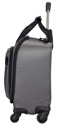 This wheeled overnight bag with retractable handle is perfect for someone looking for a smaller-sized wheeled carry on to carry the basics. the comfort grip aluminum dual-trolley handle system with quick release button recesses into the bag when not in use. the four-wheel castor system adds stability allows for superior manuverability with zero weight-in-hand when rolling upright. large, zippered u-shaped opening features lockable zipper sliders and offers easy access to the main packing compartment. interior hanging pocket for organization. two front zippered pockets for reading materials, travel documents and more. dual haul handles with unifying strap. comprised of a 1500d tedeolen fabric which provides resistance to moisture and abrasion. backed by a lifetime warranty and is guaranteed to be free from manufacturing defects in materials and workmanship for the life of the product.