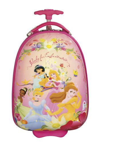 By weighing in at a mere 35 lbs, any child can wheel these fun cases around each case features inline skate wheels making them easy to roll on every surface it has a zipper closure system, that when opened reveals a beautifully lined interior with printed disney patterns, as well as a zippered divider for internal organization 2-yr limited warranty against defects in material and workmanship carry-on approved disney carry-on with clear in-line wheels polycarbonate composite, aluminum mono trolley system with comfortable tpr rubberized grip 2 year warranty 866-439-7872 18 inch x 12 inch x 9 inch 46 cm x 31 cm x 23 cm 40 lbs 18 kgs