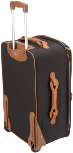 - Aluminum telescoping handle with push-button locking system, durable in-line skate wheels and patented baggage link quick-clip strap