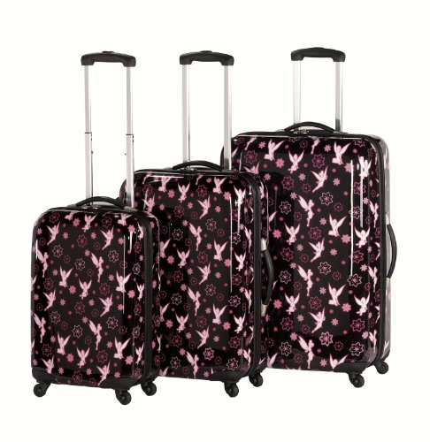Tinkerbell flower 3-piece luggage set... Adults, too, can experience the magic of disney with disney by heys rolling, 3-piece spinner set. Its flexible, polycarbonate exterior with embedded character print allows for easy, lightweight travel, while its high-gloss shell and signature lining makes this set a fashionable accessory for your next fun-filled getaway. Modern aluminum handle system and cushioned tpr grip permits easy, single-handed use. 4 360 degree swivel spinner wheel system glides on all surfaces for quick, effortless travel. Organizational pocket, divider, and tie-down straps keeps your items organized and secure.