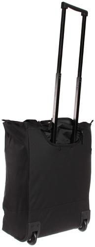 This is a great tote - it holds a huge amount of stuff, including heavy items, with no problem. It rolls smoothly and I love the fact that it has a retracting handle versus pulling it by the straps. The straps, by the way, are long enough that I am able to carry it over my shoulder to the store and then wheel it back when full. It's lightweight but seems very sturdy, and the soft material makes it easy to store flat in the car. I like it so much, I bought another so I can have one at home and one at work. It's a real back-saver!