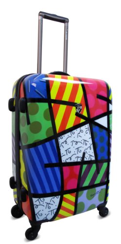 The britto collection shell is made of a polycarbonate composite, and is protected by a layer of clear coat paint that gives it a high gloss luster. Modern aluminum telescopic handle system, with push-down locking for easy, single-hand use, and cushioned tpr grip for comfort. “smart wheels” are larger in the rear for greater control and smooth movement. Britto collection has a fully lined interior customized to compliment the shell art, clear-view multi-use organizational pocket for ease of packing that also doubles as a divider, keeping your items secured. Built in travel sentry tsa accepted 3-digit lock allows baggage screeners to open your luggage for inspection, and relock for your security. 7 year worldwide “better life” warranty.