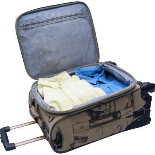 Oleg Cassini Pony Up 20 Expandable Spinner comes equipped with retractable locking handle system, Spinner wheel system for easy maneuverability, Fully lined signature interior, front zipper pocket and frosted removable zipper kit