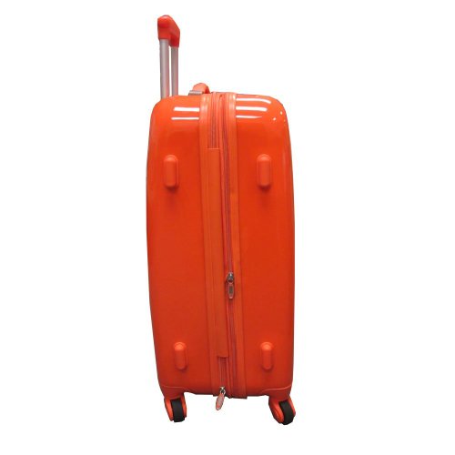Purchased Olympia Luggage Polycarbonate Luggage in Orange. Immediately upon receipt, I used one piec of the luggage for a business trip to Houston. I was very pleased with this luggage. This bright orange color makes luggage easy to spot on airport luggage turnstyles. As usual, the luggage got dirty during roundtrip commercial flights. I was amazed at easy it was to remove the black marks from this luggage.