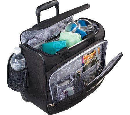 I purchased this rolling tote for me and liked it so much I purchased another one for a gift. It's everything you could want in an overnight bag - it rolls and can fit under your seat in the plane. Plus it has a Velcro strap on the back allowing you to let it ride on top of another rolling suitcase without falling off.