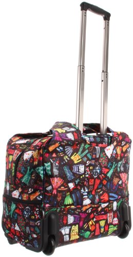 A girl's closet on the go A fun funky clothing patterned Day Trip Bag is a self contained system on wheels or over the shoulder, that keeps you organized for lightweight travel